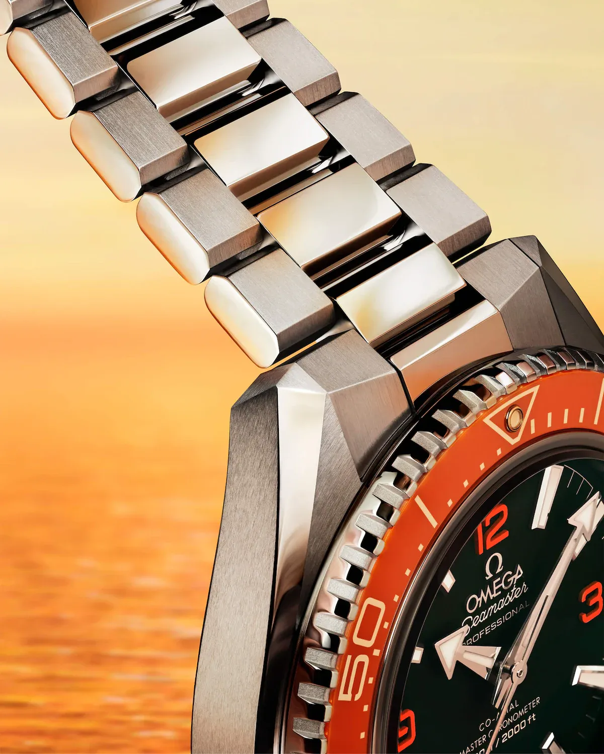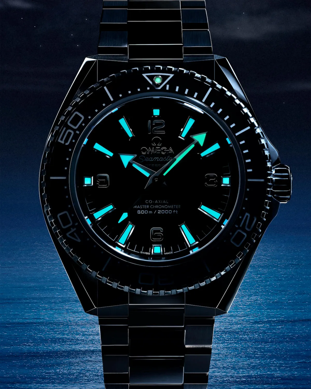 For the 20th anniversary, Omega has launched a complete transformation of the Planet Ocean. The new collection stays true to the original’s 42mm case size—a nostalgic nod to the 2005 model—but features a noticeably slimmer, flatter profile thanks to a refined case architecture and a flat sapphire crystal. These sharper, more angular lines give the watch a modern attitude while retaining its tough character.
