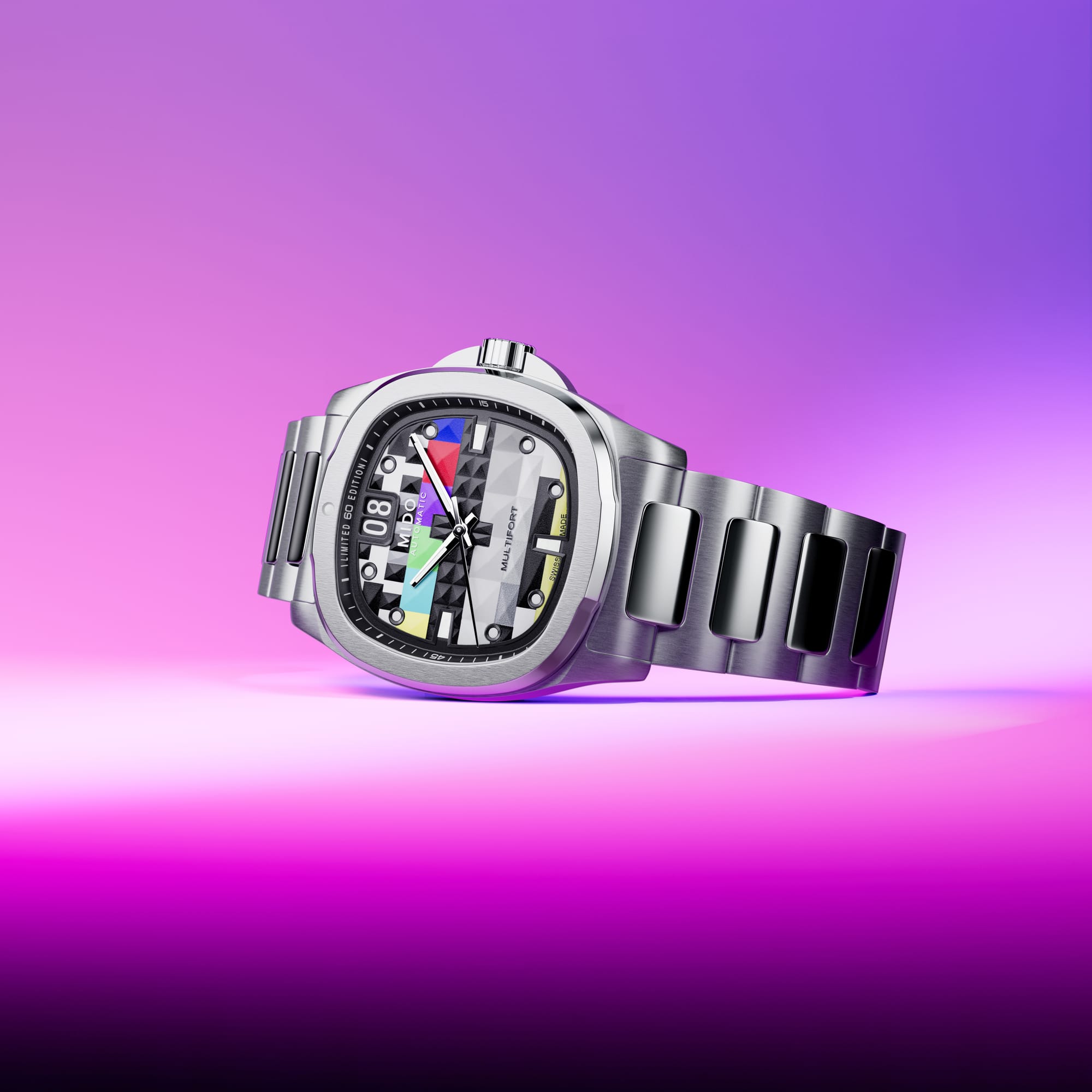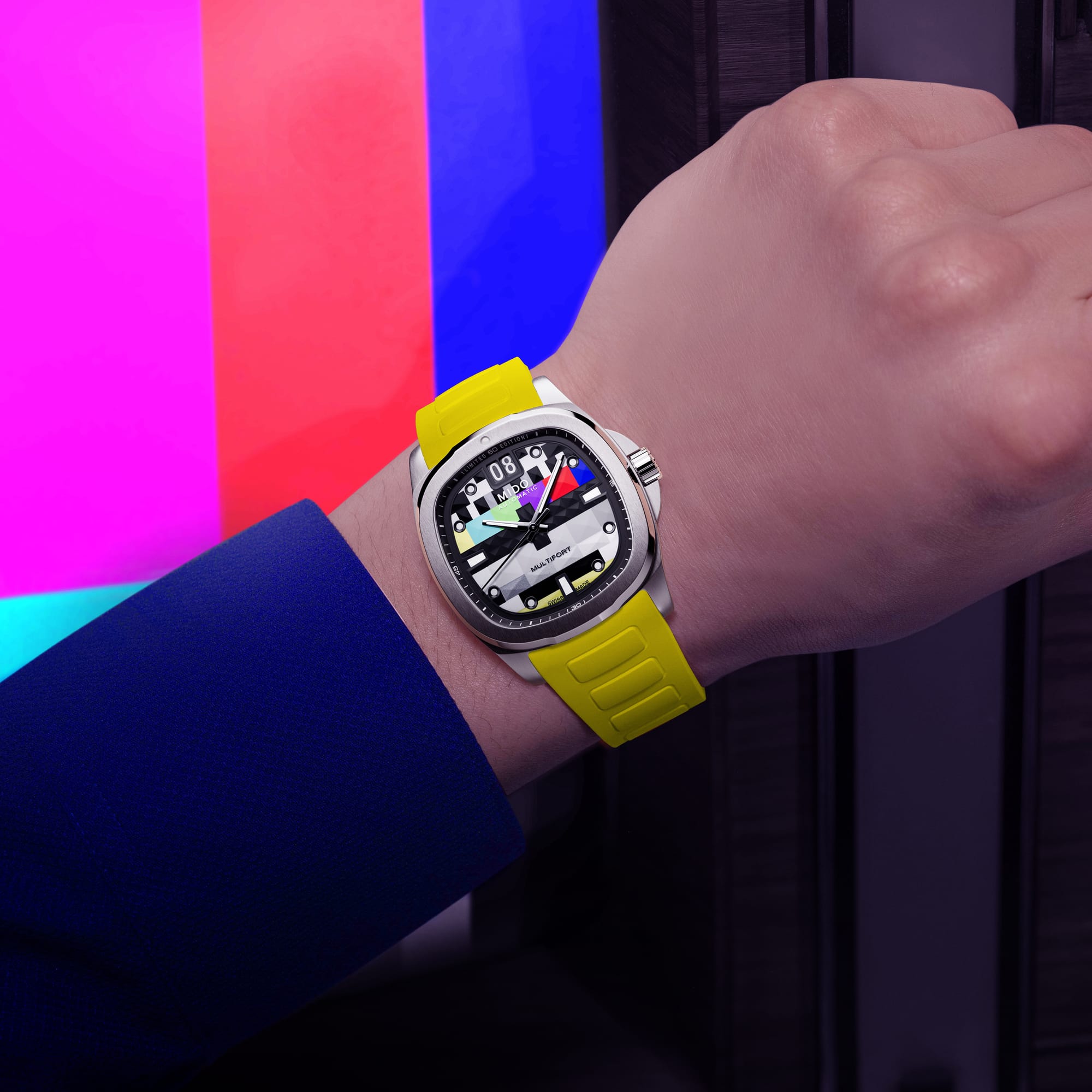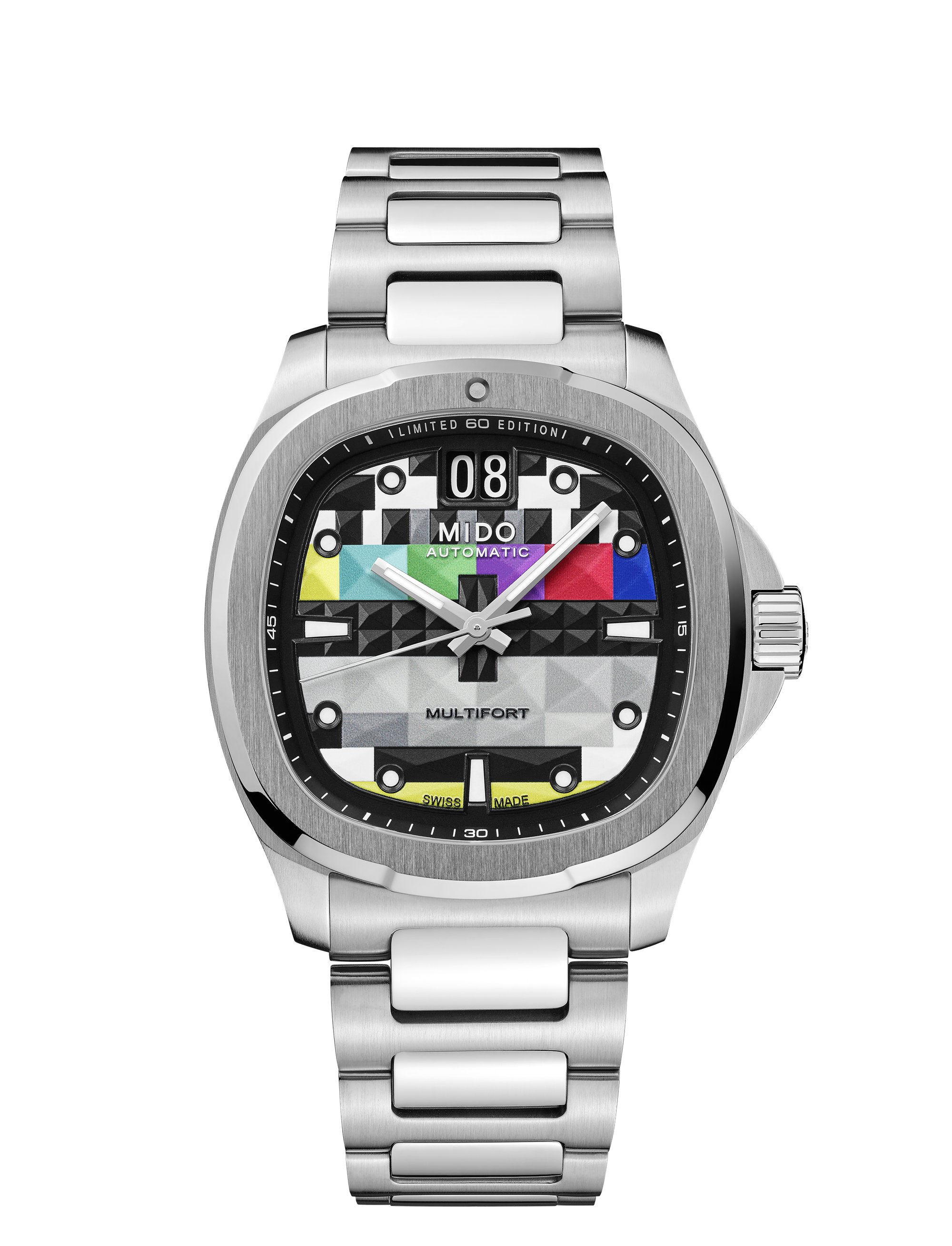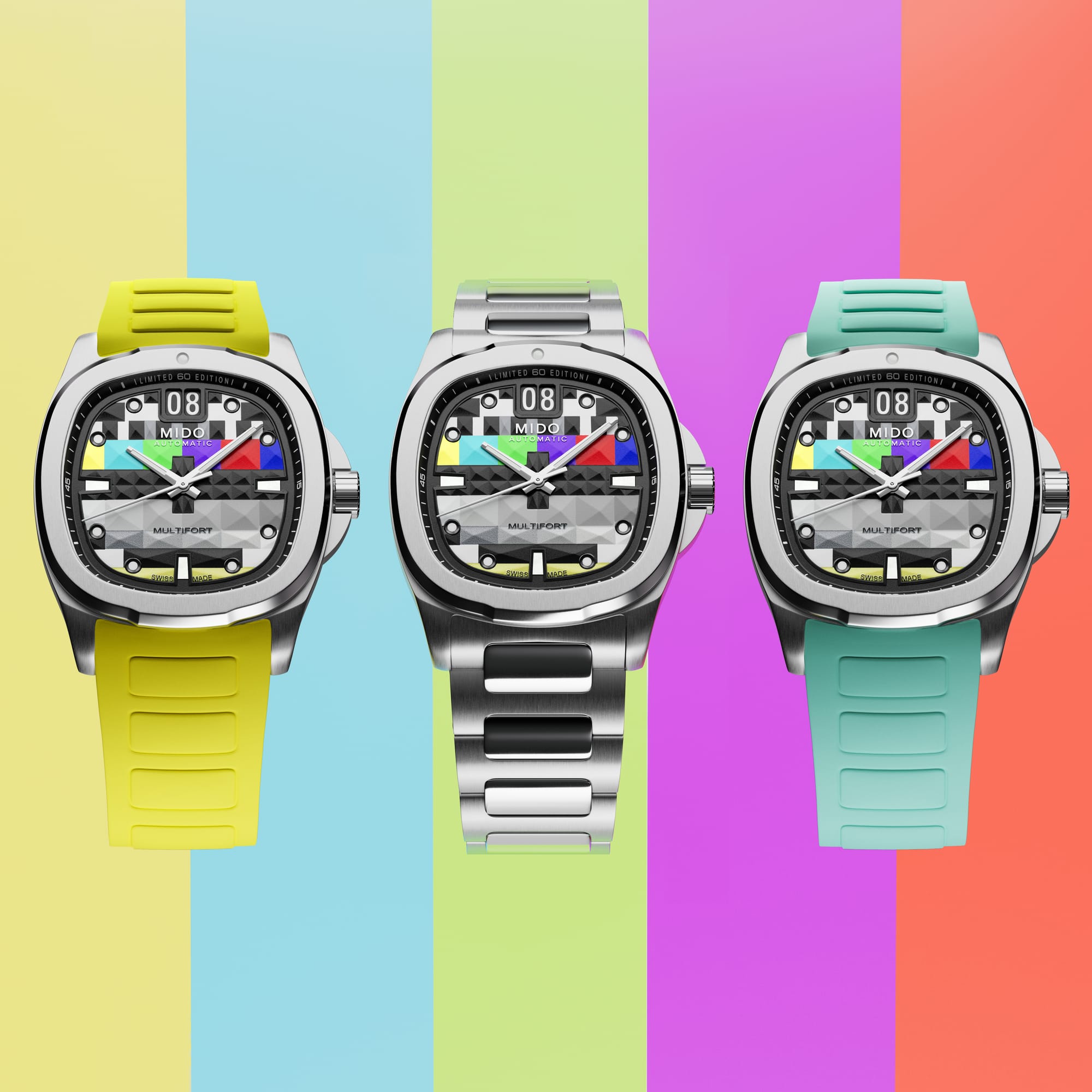 The Multifort TV Big Date S01E01 is a nod to the nostalgic era of boxy television sets, a design MIDO first embraced in 1973 and revisited in subsequent years. Now, fifty years later, the iconic TV-shaped case is back, revamped with vibrant new hues that demand attention.
