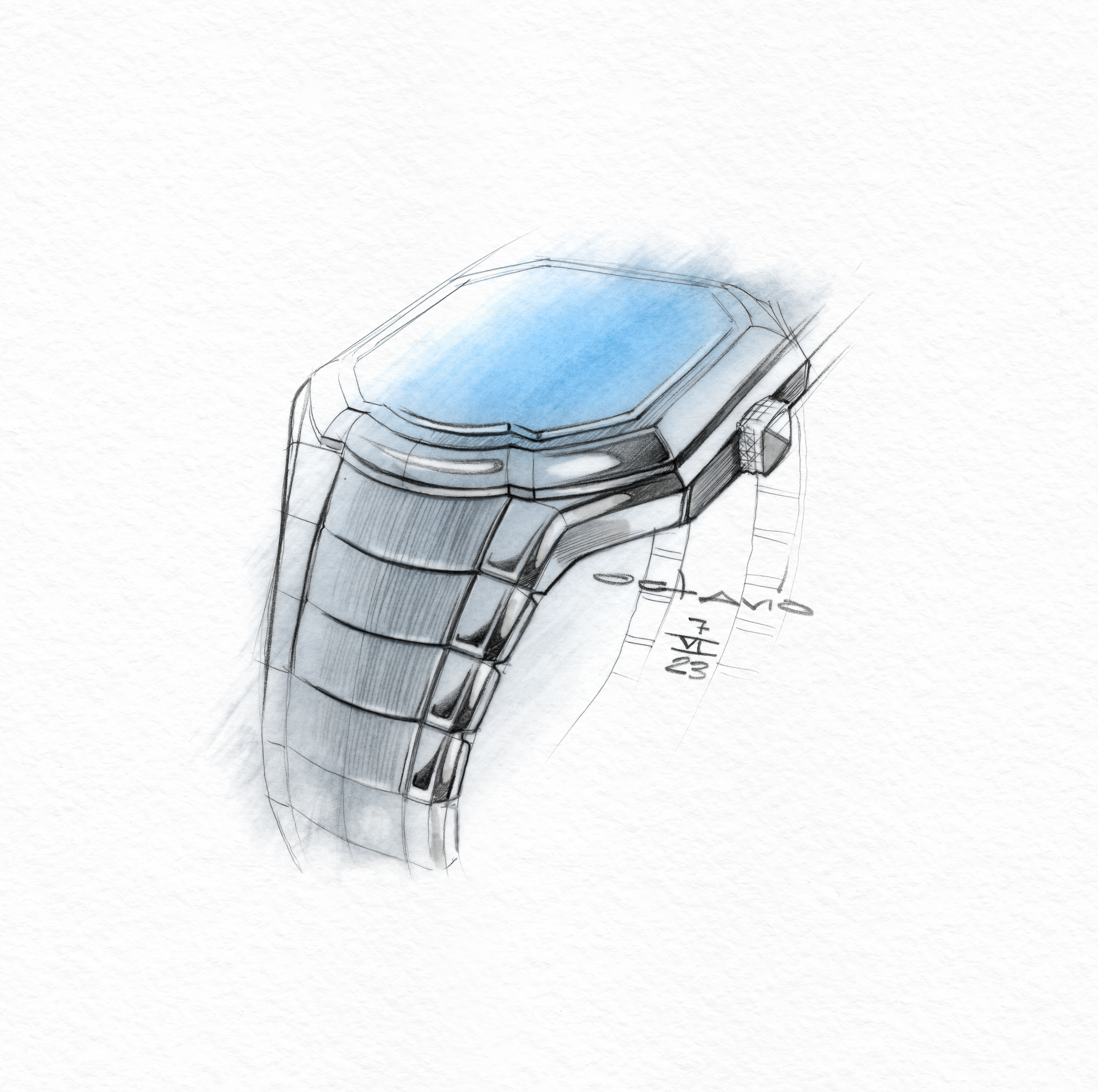 Inspired by the last 11 years of Genta’s sketches and drawings, the Masterlink is a tribute to his enduring vision. The bracelet’s alternating satin and polish finishes, along with the invisible clasp, reflect a meticulous attention to detail. The dial, with its new indices, hands, and minute markers, offers perfect legibility and an aesthetic that commands a second glance.