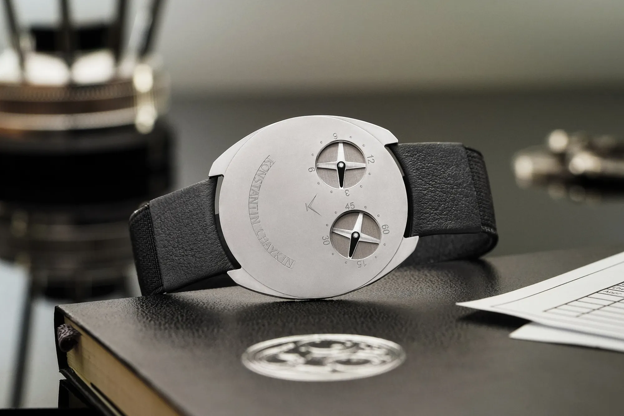 To complement the watch’s slim design, Chaykin has developed a special strap made from black alligator leather. This strap is not only luxurious but also innovative, featuring elastic inserts and flexible titanium supports to ensure both comfort and durability—yet another feature awaiting patent approval. The stainless steel pin buckle, crafted by the Konstantin Chaykin manufacture, completes the ensemble with understated elegance.
